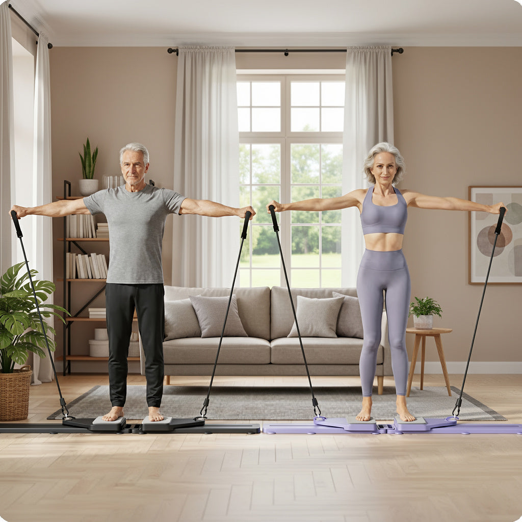 We design tools that help you move with ease, build strength with grace, and feel confident — all from the comfort of your home.